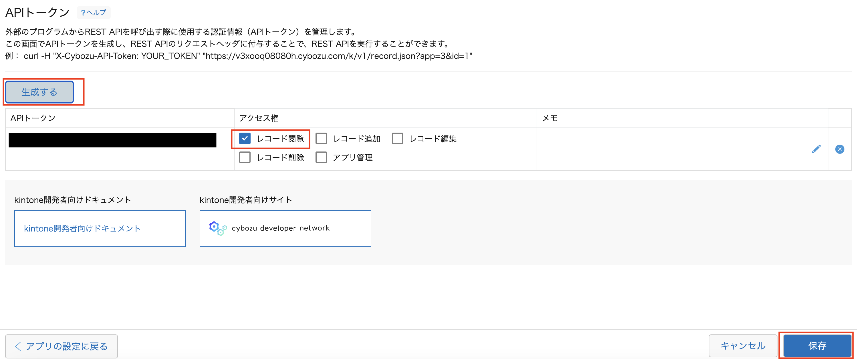 kintone APIトークンの取得